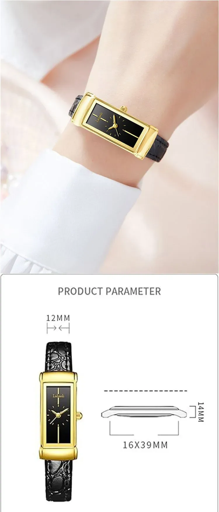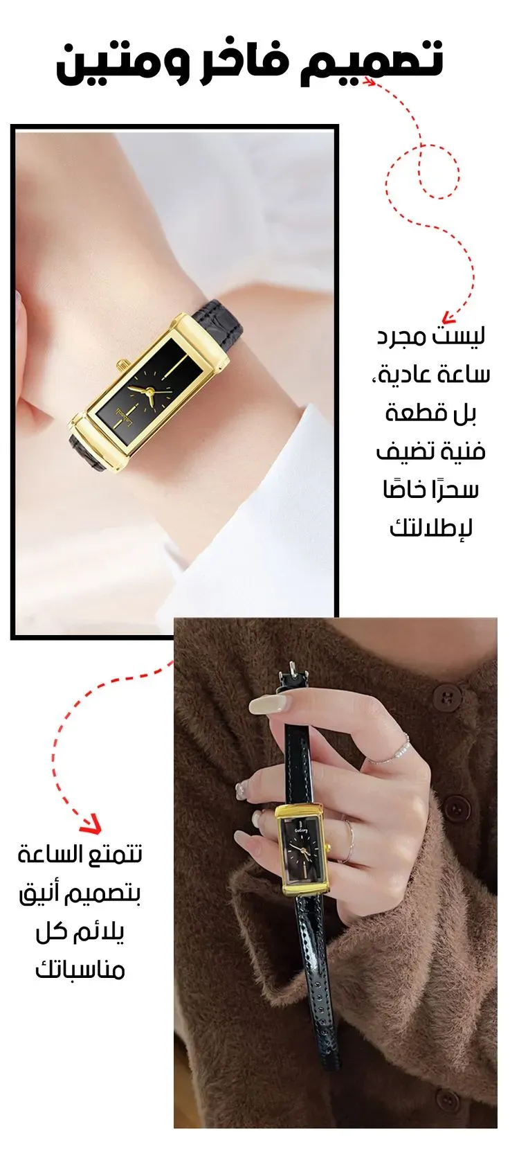 ساعة نسائية بجلد أسود ولمسة ذهبية ( فخامة لا مثيل لها )